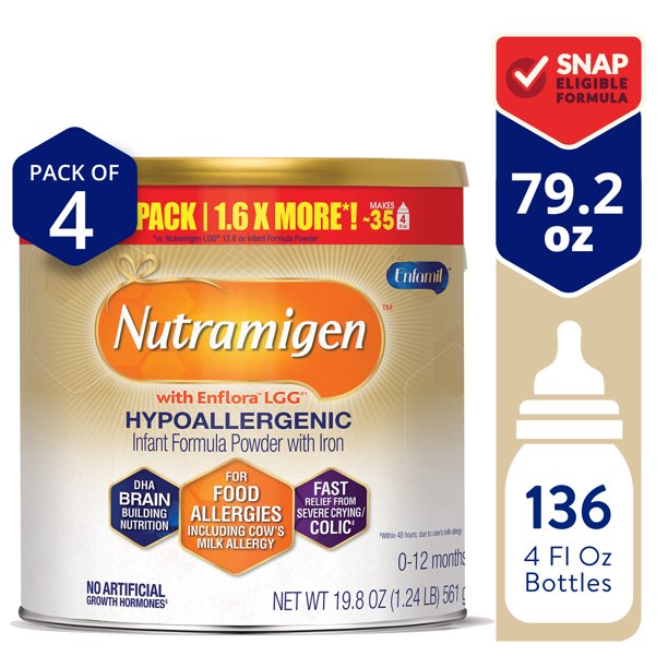 Enfamil Nutramigen Infant Formula Hypoallergenic And Lactose Free Formula With Enflora Lgg Fast Relief From Severe Crying And Colic Powder Can 19 8 Oz Pack Of 4 Walmart Com